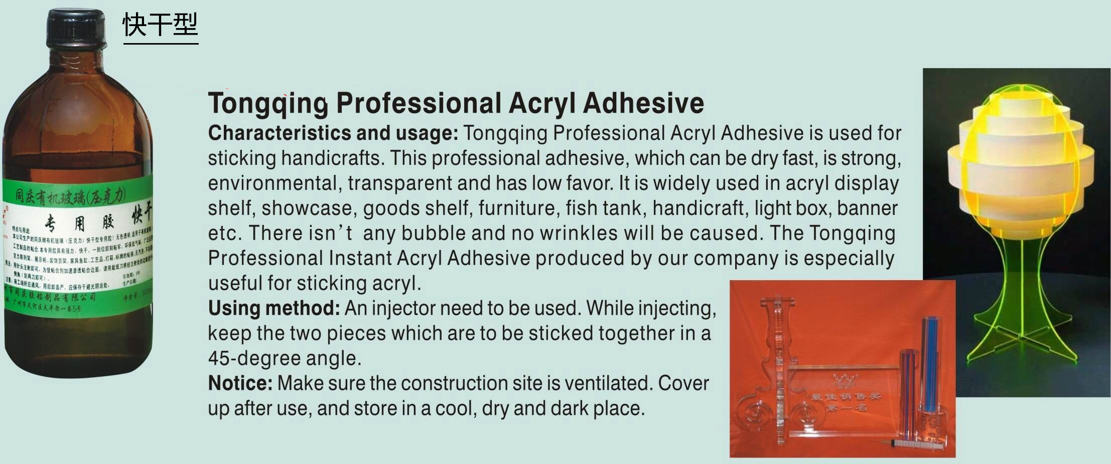 我們以市場為導向,所生產膠類產品可對金屬、塑料、木材、玻璃、砼類材料同種或異種進行粘接。廣泛用于車輛、機械、化工管路貯藏;電子電器業、木工家具、瓷器、有機玻璃(壓克力)、燈箱布、噴繪布、透光彩、PVC膠材、塑料類、辦公用品、家庭用膠。